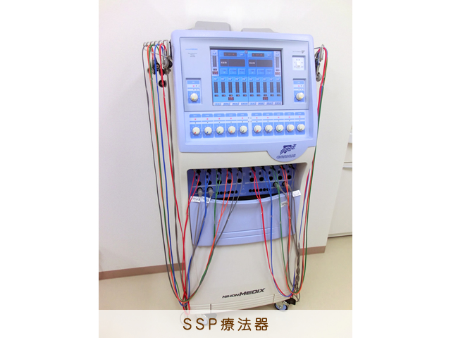 SSP電極を用いて部分的に低周波通電を行うことによって、痛みやしびれなどの症状緩和を促します。